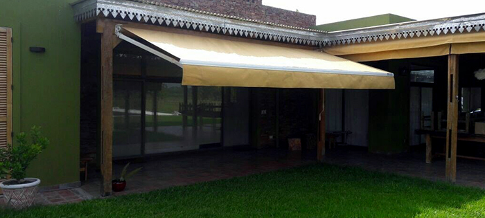 Utilizamos Herraje Importado Original Italiano (Marca BAT). Accionamiento del toldo: Manual (manivela) o automatizado (motor tubular)