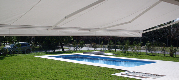 El Toldo modelo Brazos Invisibles es un sistema de protección solar que se caracteriza por ocultar sus brazos extensibles bajo la lona, permitiendo una apertura parcial y adaptándose a las distintas necesidades de uso y pendientes. Su estructura esta realizada en aluminio extrusionado templado, con acabado superficial laqueado blanco o negro. La tornillería es de acero inoxidable y el caño de enrolle es galvanizado estriado.